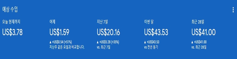 나는 한 달 동안 44달러를 벌었다. 유튜브에 출연한 사람의 수익에 비해 초라한 금액이지만, 누군가에게는 부러운 금액일 수 있다. 하루에 1달러씩 애드센스 수익이 발생하기 힘들지만, 나는 그 이상을 해냈다. 티스토리 애드센스 승인을 영화나 드라마 주제로 승인받았을 경우 돈이 되질 않는다. 어찌어찌 승인받기 위한 전략일 뿐이다.